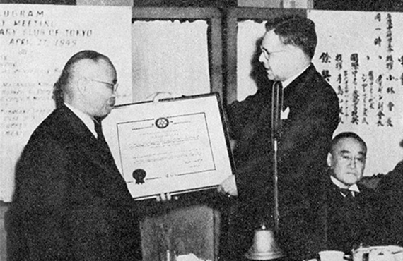 わが国最初のロータリークラブは1920(大正9)年10月20日に創立された東京ロータリークラブで、翌1921年4月1日に世界で855番目のクラブとして、国際ロータリーに加盟が承認されました。 日本でのロータリークラブ設立については、ポール・ハリスの片腕としてロータリーの組織をつくり、海外拡大に情熱的に取り組んだ初代事務総長チェスリー・ペリーと、創立の準備に奔走した米山梅吉、福島喜三次などの先達の功を忘れることができません。 その後、日本のロータリーは、第2次世界大戦の波に洗われて、1940年に国際ロータリーから脱退します。戦後1949年3月になって、再び復帰加盟しますが、この時、復帰に尽力 してくれたのが国際ロータリーの第3代事務総長ジョージ・ ミーンズでした。 その後の日本におけるロータリーの拡大発展は目覚ましいものがあります。ロータリー財団への貢献も抜群で、今や国際ロータリーにおける日本の地位は不動のものになりました。 現在、日本全体でのクラブ数は2,269、会員数89,187人(2016年2月17日現在)となっています。